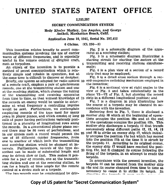While Lamarr’s idea was not new, her concept of using frequency hopping to prevent the intended target from jamming the controller’s transmissions was.