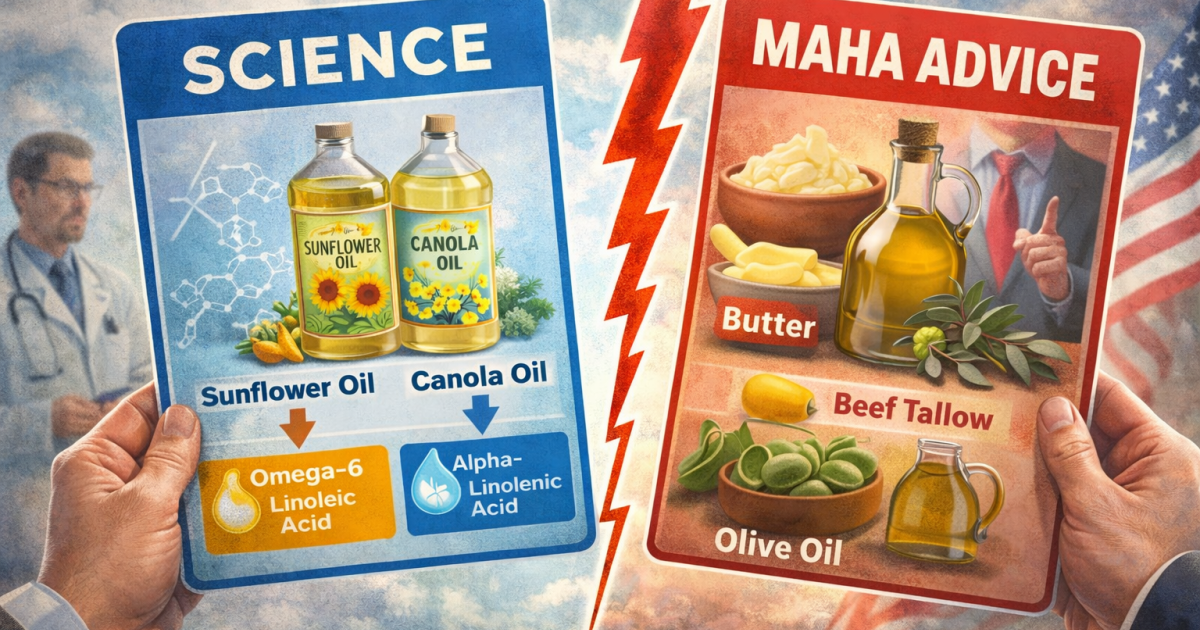 By referencing “essential fatty acids,” the guidelines appear to acknowledge established nutritional science. Yet by citing olive oil, butter, and tallow as examples, they steer readers away from the oils that most efficiently provide those essential fats—and toward fats currently undergoing rehabilitation under the MAHA agenda.
