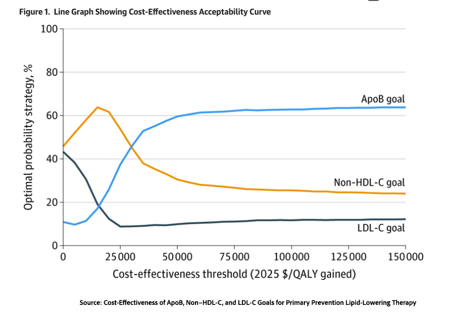 Source: Cost-Effectiveness of ApoB, Non–HDL-C, and LDL-C Goals for Primary Prevention Lipid-Lowering Therapy JAMA DOI: 10.1001/jama.2026.2986