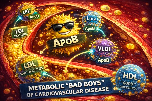 Apolipoprotein B (ApoB) is present on the lipoproteins we have identified as causal factors in atherosclerotic cardiovascular disease. It is found on low-density lipoprotein cholesterol (LDL), the poster child of bad cholesterol, and is also present on the less concerning posse of very LDL-C, intermediate-density lipoprotein cholesterol, and lipoprotein A. Because these particles can contribute to plaque buildup in arteries, lowering atherogenic lipids remains a cornerstone of primary prevention.