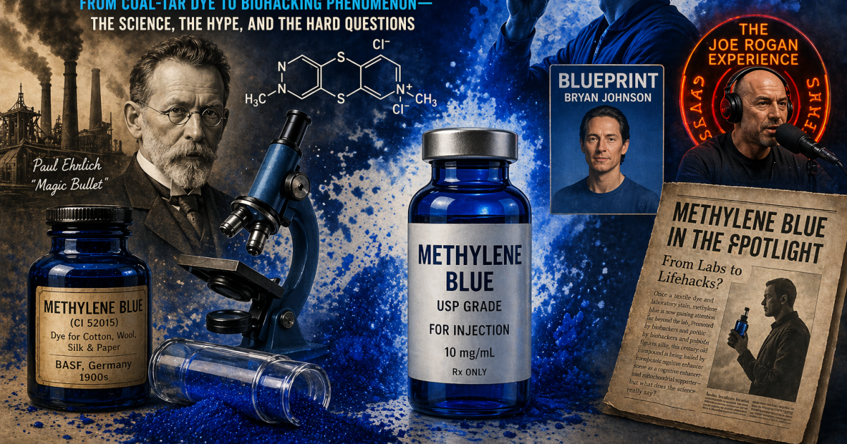 Born as a coal-tar dye, reborn as a “magic bullet,” methylene blue has taken an improbable journey from textile vats to today’s biohacking. Its appeal rests on a seductive mix of real biochemistry and speculative promise. But as the science unfolds, the story becomes less fairy tale and more cautionary tale about how easily plausible mechanisms can outpace proof.